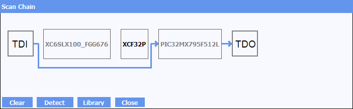The first step in programming the PIC is to establish which devices are on the JTAG chain. The PIC32MX software is capable of programming the PIC even when this is not the only device in the JTAG chain. To do this