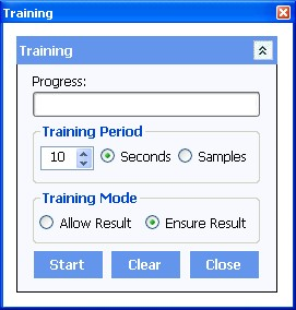 The Automated Training is done by performing a sequence of reads automatically and updating the comparison states. This can also be done several times to allow learned results to be combined. The default learning time is set to 10 seconds but this can be increased to a maximum of 60 seconds or the training can be performed several times. It is also possible to train for a pre-fined number of samples. Comparison settings and results are shown on the main device window.