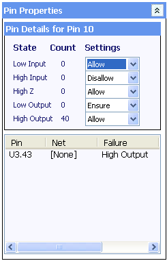 The Allow result button will change the pin states of device pins to allow any results that have been seen in the last read operation. This is done cumulatively to allow the state of the board to be trained multiple times without affecting previous results. Pressing Ensure result has the same effect as Allow result but the results are changed to Ensure instead of Allow.